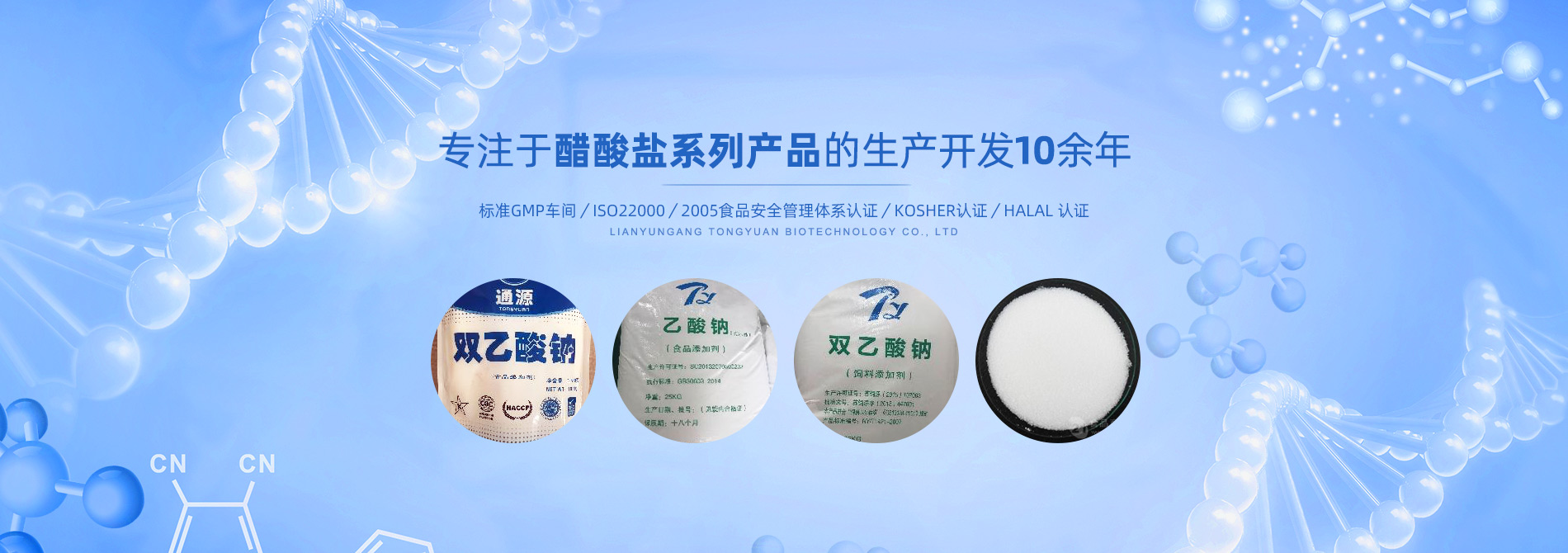 連云港市通源生物科技有限公司 是生產(chǎn)雙乙酸鈉、無(wú)水醋酸鈉、三水醋酸鈉、醋酸鉀、乙酸鈉、丙酸鈉、丙酸鈣和氯化鉀等系類(lèi)醋酸鹽產(chǎn)品的專(zhuān)業(yè)制造商。公司專(zhuān)注于醋酸鹽系列產(chǎn)品的生產(chǎn)開(kāi)發(fā)10余年,是國(guó)內(nèi)專(zhuān)業(yè)醋酸酸鹽產(chǎn)品生產(chǎn)基地。 目前,我們已和全球30多個(gè)國(guó)家和地區(qū)建立長(zhǎng)期的業(yè)務(wù)合作關(guān)系,是中國(guó)較大的雙乙酸鈉生產(chǎn)商和出口商之一。作為中國(guó)食品添加劑和配料協(xié)會(huì)理事單位,通源公司已建成標(biāo)準(zhǔn)GMP車(chē)間5000余平方米,通過(guò)了ISO22000:2005食品安全管理體系認(rèn)證、KOSHER認(rèn)證、HALAL 認(rèn)證等,這些都是我們提供高質(zhì)量產(chǎn)品和優(yōu)良服務(wù)的前提和確保。 生產(chǎn)出色產(chǎn)品,提供優(yōu)良服務(wù),滿(mǎn)足顧客需要,是我們努力的目標(biāo)。愿和我們的朋友們攜手,共...